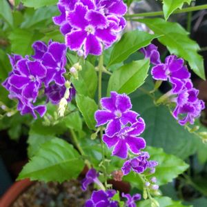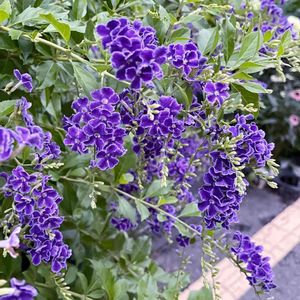 おはようございます😄 8時代に水やりにお庭に出ただけなのに、 10時になってしまった💦 デュランタ宝塚💜💜 深い紫色の花ですが、端っこは白色です。 白い縁取りなので宝塚で有名なタカラジェンヌが正装したはかま姿に似ているので デュランタ宝塚という名前になったそうです😄 3年目の鉢植えですが、こちらは大きくなるお花で我が家には大きすぎるかも💦 カットすれば小さく管理できるのかしら?? 今日も暑いですが、良い週末を お過ごしくださいね🍀 🏷美しく青きドヨウ に参加させてください🙏