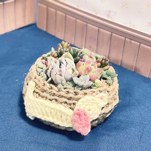 おはようございますꕤ︎︎·͜· 久々に寄せ植えをしました𖤣𖥧𖥣。 鉢は麻糸で作って寄せ植え♡ お家にいる子で作ったのでちょっと元気か心配な子もいるけれど… 好きと好きを掛け合わせてさらに楽しみが増えました*ˊᵕˋ*
