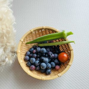 今朝の収穫です♪ 今年はブルーベリーとビルベリーがすずなりです。 オクラとトマトは初収穫で1つづつ😊 つるなしいんげん豆は1つだけでした🫛😅 へなちょこ家庭菜園ですが楽しいです。 ワンコ、、、とりあえず食べられるか確認してます🐶
