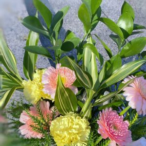 心より愛と感謝を込めて花束を♥️🐾 今回はこんな感じだよ🐾♥️ ʕ๑•ω•ฅʔ•*¨*♡ͥ︎ ♡ͦ︎ ♡ͮ︎ ♡ͤ︎ 今回の花材 アルストロメリア 2種類 イタリアンルスカス ドラセナ サンデリーバリケイト