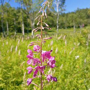 ヤナギラン(柳蘭)アカバナ科ヤナギラン属 ヤナギランが湿原に群生していて綺麗でした。 他にもチダケサシやクサレダマが群生してました。 何度も入笠山に来てますが、ここまでのお花がたくさん群生したのを見るのは初めてです。 ヤナギランの和名の由来は葉が柳に似て花が蘭のように美しいことから。北米の山火事跡に大発生することがあり、fireweedと呼ばれる。 茎は直立し、分枝しない。葉は互生し、長さ5~18㎝の披針形、細かい鋸歯がある。茎頂に総状花序をつける。花は直径3~4㎝、花弁は4個。萼片4個。雄しべ8個。柱頭は4分岐。果実は細長い蒴果 🏷 ピンクワールドにようこそ
