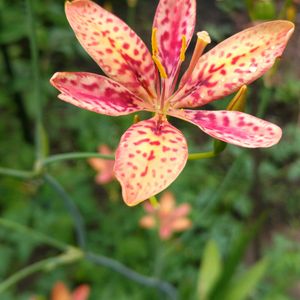 🌸🌿今日のお花🌿🌸 ヒオウギ(檜扇) ①昨年のお花 ②③今は蕾で、場所により成長が違います。 ③は植えてはいないのですが、一昨年くらいから出てきました🌱 日当たりはこちらの方が良いのですが、畑より遅め ④国蝶🦋 オオムラサキ 昨日2階から降りてきた猫が遊んでいたので見たらこの子が…😓 森に住む蝶が家に来たのが不明ですが、見た事がなかったので調べたらオオムラサキでした! 急いで保護してエキナセアに止まらせましたが、後ろ翅が一部欠けてしまっていて…😣 最初は翅も閉じたままだったもののゆっくり羽ばたきを始めてきたので 暫くして見に行ったらいなくなっていたのでホッとしました。 もう二度と見る事はない(家には来ないで🙏)🦋さん とっても美しかったです✨️✨️ 元気でいて欲しい💕 ⑤収穫したブルーベリー&トマト ブルーベリーは初収穫😋