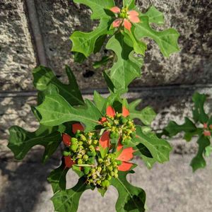 零れ種から サマーポインセチア 去年種取って撒くの忘れたけど あっちこっちで咲き始めています😍
