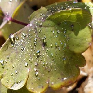 おはようございます☀️🙋♀️❗ 今朝も良い🌞 オダマキの葉っぱについた朝露が 朝日と青空を受け宝石💎を散りばめたように輝いてきれいです💖
