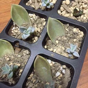 葉挿し。だいぶ大きくなりました。たまに奇形葉もあるけど٥ε٥ ブラックナイトは苗を買った時に根元に落っこちてたもの。。 一つの葉から2こも赤ちゃん出ています✌︎