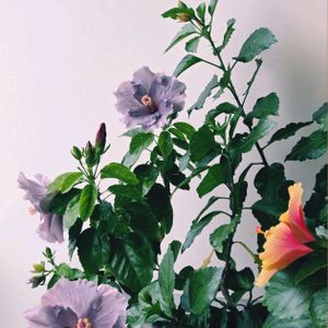 ハイビスカス🌺 ケイト 今日は☔の為か涼しいので今朝咲き初めていたのもマタマダ元気で開花を見せてます✨️😊 一度に4輪は珍しいかなぁ……☺黄色の花も元気で楽しませてくれました🤩
