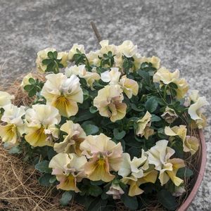 ミルフルアンティーク🌼と、小輪パンジーわらく🌸並べておくとめちゃかわいい🥰 今年のお気に入りの一つです❣️