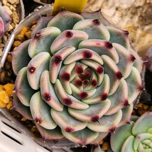 植え替えのあと水たっぷり吸って むっちりやけど よかいろしとる〜💕 この子のぎゅうぎゅう葉挿しっ子たち植え替えしちゃろ♪ 原種置いとっても交雑とかば どれも顔違いで販売しとったら信用ない 結局室内の桃黒とジェコルビ、チワワ、コロラタしかさいとらんけどコロラタは花粉を少し使ってみた ジェコルビ赤は最後に咲いて相手がおらんけん余ってカプセルに入れたチワワを付けてみた チワワ自家受粉してみればよかったと後悔