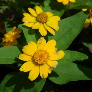 🌿💛メランポジュウム💛🌿 元気カラー💛まだ元気です~💖 お花の中心が翡翠色でステキです😍 👇の種に又来年期待してますよ…❣️😊