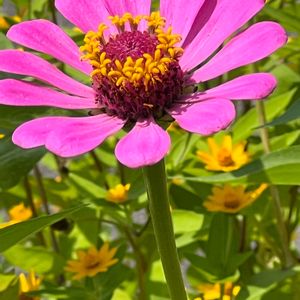 近所のスーパーの駐車場の花壇です… 久々に行きました… 夏は決まって、元気の出るメランポジュウム、ジニア、エキナセア、マリーゴールド、です… 今夏はいやなことがたくさん…秋になって元気😊をもらいました… (9月13日撮影)
