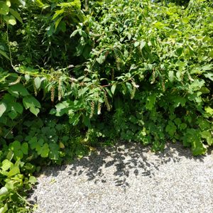 おはようございます。 実家の墓参りに行ってきました。 一年ぶりに実家に行ってみると、🌀で庭の桐の枝が折れて屋根にのってました。😱 電線にも引っかかっていたので鋸で手作業。今朝は腕が痛いです。😅 お花が咲くのを楽しみにしてたのだけど… ウバメガシ(備長炭の原木)も伸びていたので剪定バサミで切りました。今年は木の実がたくさん出来てます。 畑でヨウシュウヤマゴボウが色づいてます。