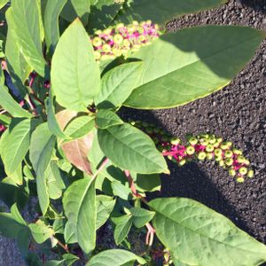雨の中、とっても綺麗な色……💜 子供の時に実を潰して、手が紫色に染まり、服にも着いて落ちなかったことを思い出す♡ どなたか、名前を教えて下さい🙇✨ PS ヨウシュヤマゴボウ(洋種山牛蒡) と教えて頂きました。 ありがとうございました❣️