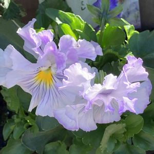 【パンジー&ビオラ】 11月初旬に植え付けした寄せ植え🪴 昼前には影ってしまう所でも綺麗に咲いてくれています。 日向に持って行ったらもっともりもりになるんだろうなぁ〜と思いながらもそのままです😅 『絵になるスミレ パルム』は 花弁が大きくて本当に綺麗です✨✨ 美しすぎます🤩✨✨ 毎日うっとりしています😍 『ヘブンリーブルー』は 透明感のある水色がそれだけで素敵なんですが… 何だか中心が緑っぽいニュアンスカラーになり益々素敵に💓 来シーズン、ヘブンリーブルーだらけにしたいぐらい好きです😘 種まき頑張ろうかな… 安価だったので買った方がコスパ良いかな…🤣 試しに地植えの子もいます☺️ あまり日が当たってない気がしますが… どうなるかなぁ☺️