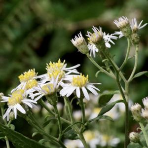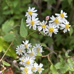 こちらはシロヨメナですね😍 ヨメナの類はなかなか分類が難しい。 関東以北に分布するカントウヨメナ、中部以西のヨメナと棲み分けされているのもあります。 シロヨメナは、長楕円状被針形で、荒い鋸歯のある大きめの葉に小さめの花がつきます。葉はザラつかないと言われますが、実際はザラつきますね🤔