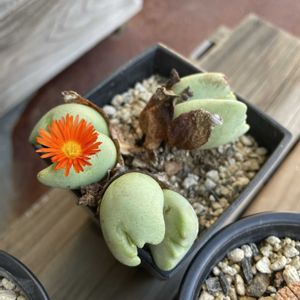 ①コノフィツム「向陽門」。2024年に購入。 コノちゃん、花盛り。 ② リトープス 「マライシー」、2025年3月購入。 「日輪玉(ニチリンギョク)白花」、2024年4月購入。 「微紋玉(ビモンギョク)」、2023年11月購入。 リトくんたちは、みな脱皮し始めたみたい。 ————— Conophytum ハマミズナ科コノフィツム属 多年草、多肉植物(女仙) アフリカ南部(南アフリカ、ナミビア南部)原産 ————— Lithops fulviceps ハマミズナ科リトープス属 多年草、多肉植物(女仙) アフリカ南部(南アフリカ、ナミビア、ボツワナ)原産。特に年間降水量が250㎜以下の乾燥している所を好む。
