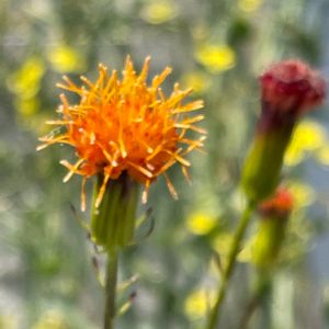 🍀水前寺菜・金時草・ハンダマ🍀 数年前にご近所さんから挿し芽で頂き、根づいたと喜んでいたんですが 雪で傷めてしまい、😱やっとこここまで復活して花芽がつきました。🥰💕 オレンジ色のアザミを小さくしたようなお花が咲くそうです。でも凄く臭い😵らしいです。🤣🤣🤣🤣 葉っぱの裏側はきれいな紫💜色で 食べることができますよ。 私はアサギマダラに立ち寄ってもらいたくて植えているので食べたことはないですが。😅💦 今ごろ咲いても祢ぇ〜😭😭😭 🏷金曜日の蕾たち 🏷蕾応援団 に参加させて下さいね。