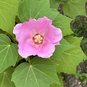 庭に出ると優しいピンク色のフヨウが咲いていました。 ムラサキルエリアが2つ並んで可愛いく咲いています。 どちらも姉からもらったお花です。