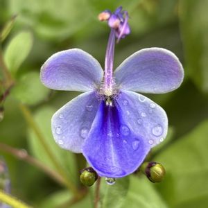 ツルバキア、夏の間、ポツポツと咲いています 葉っぱが涼しそうです ムラサキルエリアは毎日よく咲いて夕方には花が落ちています