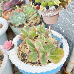 ⋆。˚✩花月錦ꯁꯧ 縁どりピンクで(ෆ˚*¯ ꇴ ¯)*♔ 💓カワイ 🏷夜なべっこ プチリンゴ鉢🍏作って見ました⸝⸝⸝ෆ 雨だから、リメ活するしかない🌧 🏷ポジティ部♡