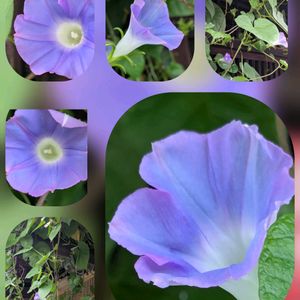 おはようございます💜💙 小路のとても小さな アサガオが一斉に 咲き始めました。🔹🔹💚 🛵〰️💙