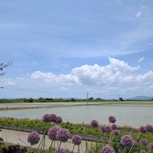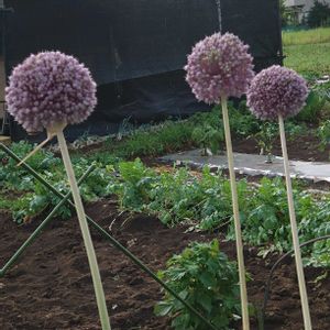 近くの畑に、ねぎ坊主よりはるかにでっかい玉…見っけ🎶 突然クマバチが2匹飛んできました🐝 羽音がとっても不気味で怖い😱