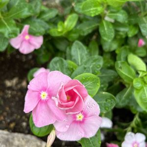 🍁おはようございます〜☁️29℃ 🩷日々草の花言葉〜 楽しい思い出... 🌸朝顔の花言葉〜 愛情... 😍一枚目の日々草、、 逆さまに見るとお顔に 見えました🤣🤣😆 朝顔まだまだ元気そうですよ〜😤😆 体調崩さないように良い一日をお過ごしください( ◠‿◠ )🌸💜🍇🍹