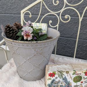 こんばんは🌠 先月お迎えした〝アイクルール〟 わが家は気温が低めだからか、なかなかお花の数が増えてくれません🫣 植木鉢が少しさびしく見えたので、松ぼっくりと、思い出の絵柄のタイルを添えてみました💐 10月に初めて体験したモルタルデコパージュが、とてもお気に入りになっていて…😍 モルタル造形は作れませんが、レンガにデコパージュして楽しんでいます🧱 優しい先生がセンスの良いクリスマス柄のペーパーを用意してくださっていて、 「クリスマスデコパージュは絶対作りたい!」と思っていたので、 イニシャルも入れて仕上げてみました もっと上手になりたいです🖌️🎨