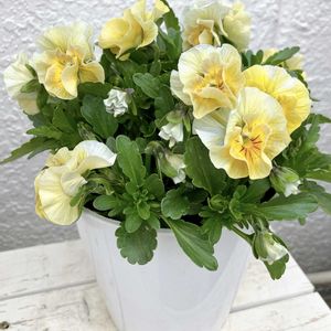 こんばんは(๑•᎑•๑)♬* 今日のパンビオさん~👏👏👏 ①エッグタルト🌼 サトウ園芸さんのビオラ・エッグタルトさん😃︎💕︎ しばらくお休み😪していましたけど、ようやく冬眠からお目覚め🤭 これからモリモリになってくれると良いなぁo(^^o)(o^^)oワクワク♪ ②③アイクルール🌼 花日和さんと桐生ファームさんのコラボビオラのアイクルールさん😃︎💕︎ この子達もようやく冬眠からお目覚め( ˊoˋ ) 。゚ ②と③それぞれ違う株の子で、花色の濃いめの子と薄めの子😋 どちらも可愛い(๑•ᴗ•๑)♡カワイイ♡ ④ジョリーアンジュ🌼 村岡オーガニックさんのパンジー・ジョリーアンジュさん😃︎💕︎ めっちゃ仲良しのお二人さん(*ˊᗜˋ)σミッケ♡ ⑤コライユ🌼 マツバラフラワーファームさんのパンジー・コライユさん😃︎💕︎ ブリブリのフリルではなく、このくらいの緩いフリルが僕的には好み🥰💕