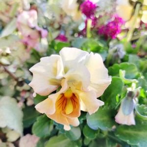 お気に入りの 乙女ピンク🩷🤍 絶妙なニュアンスカラー💞💛💜🩷🤍👍 フンワリフリフリ ビオラアイクルールの寄せ植えです。 地元 桐生ふぁ〜むさんと、 花日和さんの、共同開発新品種 桐生ふぁ〜むさんは、 地元 三重鈴鹿。 元気に沢山お花を咲かせてくれてます。 ❁ビオラ アイクルール1種と 葉物色々の寄せ植えです。 ➄ラベルご覧くださいね。 🏷️2025百科魁 エントリー(パンビオ) パンビオ応援picです。 🏷️木曜日は桃色 🏷️春色ピンク 🏷️小さな寄せ植え よろしくお願いします。