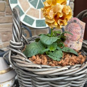 マイガールを求めて行った園芸店で 素敵なロココに出会ってしまいました✨ イエロー💛にほんのりブラウン🤎 蕾はパープル💜 期待に胸が膨らみマス🤩❣️ …でロココとご一緒する子達も またまたお迎えしちゃう 懲りない私…😅