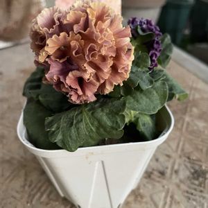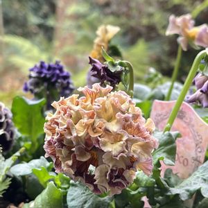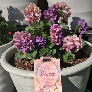 サトウ園芸「ローブ ドゥ アントワネット ロココ」 寒くなってきたので紫色が強く出てくるようになりましたが、花数はめっちゃ増えてきました😆