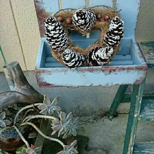 おはようございます☁☔ 皆さんの素敵なリースに感動して、チャレンジ🌠🎶🌠 ところが松ぼっくりか大きくて、リースが小さくて 納得できる出来ではないけれど、雰囲気だけは、 🌠🎶🌠クリスマス🌠🎶🌠