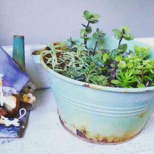 リアル錆び缶にブロンズ姫🌿最高に可愛い❤ カエルちゃんのバケツもいい感じに錆びててニヤニヤ😍