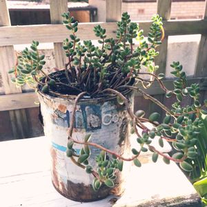 連投失礼します(o゚v゚b) ブロンズ姫の葉挿しが プリンプリンに 可愛いくなってたから つい📸パチリ✨ 缶も リアル錆びがいい感じ〜♡( ᵕ̤ૢᴗᵕ̤ૢ )♡ って思ってたら あっと言う間に 底が抜けたりする…😅 この いい感じ〜な錆びが キープ出来たらいいなぁ〜🤣笑 では、晩ご飯🍴作りますᕦ(ò_óˇ)ᕤ✨ *葉挿し : ブロンズ姫