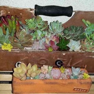 ママchianのお店で買ったパン型に 寄せ植え~🐱🎵でも 土が無くなって、置いただけ~(笑)✌🎵