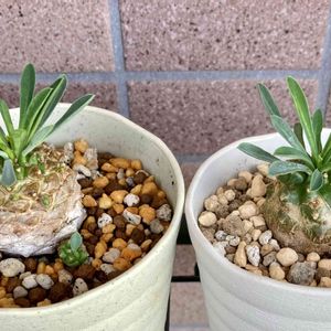 ホームセンターに買い物に行ったらグラキリスとか高級なコーデックスがたくさん入荷してました😍 何万円もするのは絶対買えないのでお手ごろ価格1980円のステファニアエレクタを購入! 土の配合がわからない🥺 赤玉土3腐葉土2種まき用の土1軽石1くらいで植え替えしました。 これでよかったのかな?