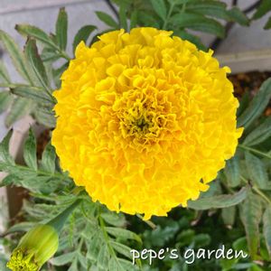 おはようございます🌞 今日は朝から(´Д`;Λ)ぁっ~ぃ!! ド真ん中の日🏷に参加させてください😊 まん丸マリーゴールド💛 フリフリゴージャスです(❁︎´ω`❁︎)*✲゚︎* 蕾はライムグリーンだったので、てっきりグリーンのお花が咲くのかと期待していたのに咲いたら黄色でした🤣