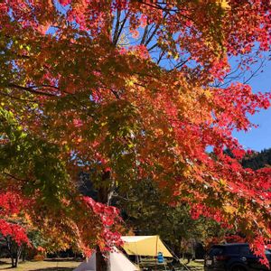キャンプ🏕に来てみました。いつものとこが台風被害で閉鎖されてたので、那須の鳥野目河川公園キャンプ場まで足延ばし。 那須でも平地の紅葉はまだまだ、公園の木がわずかに色づき始めたくらいでしょうか🍁 飛び石連休なので結構混んでます。