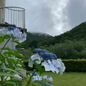 今日はほんとに久々のお出かけで田舎の方に来てます✨🙌お⛰の緑が良い色で、目👀にも良さそうです🤣 天気はギリギリ持ちこたえてます🤲🌂 ガクアジサイさんで合ってますよね💠