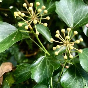 これは「キヅタ」の蕾ですね。秋に花を咲かせ、出来た実は冬の間中ずっとぶら下がっていて熟すのは春咲き、暗紫色の独特の色合いになります。 熟す前もそうだけど、実の一つ一つが目玉オヤジ👁みたいで、ふと視線を感じるような雰囲気があります😆