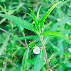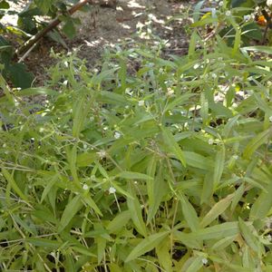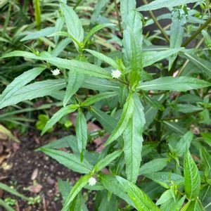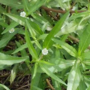 おはようございます😃 細い葉っぱが十字形に美しく並んでいます。 小さな白い花はキク科を思わせます。 アメリカタカサブロウという草でしょうか。🤔 田んぼの畔にびっしりと生えています。 ツユクサなどと似て、固まって生えるようです。 今年は雨が多いせいか、水田周りの雑草が元気です。😁