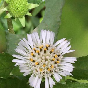2022/9/11 この花、アメリカタカサブロウ(亜米利加高三郎)のようです。 花言葉は、「いつかきっと」との事で、茎を折ると出る黒ずんだ液で文字を書いていた貧しい状態から抜け出す決意からとのことのようです。黒い染料を抽出して、髪染めなどに使用することもできるそうです。