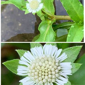 おはようございます😃 タカサブロウ続きですが、、 水路に茂っている草に白い小さな花が よく見ると👀 アメリカタカサブロウだ❗️ でも葉の大きさ、太さが違う 2つの花はどっちもそっくり♡♡ これって アメリカタカサブロウと タカサブロウ?
