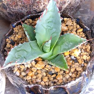ワンコイン🪙アガベ 妹とお揃いでアガベを迎えました 🪴アガベ パラサナ 正直言って2枚葉だけのアガベが並んでいても 大人の姿が想像できないので ひと目でアガベと分かる子を手にしました 多分、信楽焼であろうの三つ足鉢にin♪ ↓ボタニックボム戦利品