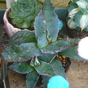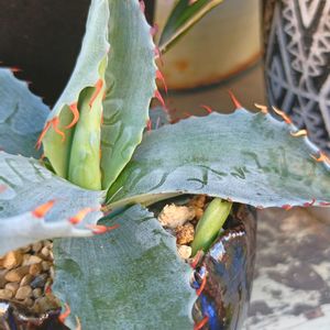 今日のお花はアガベとな⋯(≖ᴗ≖ )ニヤリッ 💠アガベ パラサナ 1年半前に小さい苗買って 去年秋にお子らしきモノが見えて来て 今に今に至ります 先日の多肉来福さんのご主人に聞いたら 植え替えは秋まで待ってと言われました💦 カッコいい鉢買って待ってるんだけどなぁ🥺
