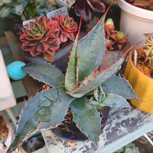 明日は誕生日 きっと気分が上がるはず 【お気に入りpost】② 💠アガベ パラサナ お子がメチャ大きくなりました 多肉屋さんにアガベには深い鉢をと 言われてしまったのでまた鉢探し せんとあかん😑