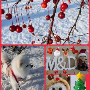 おはよーございます❄ 大福とお散歩中の景色~ 今日は『エゾノコリンゴ』🚶♀️🐕🐾໊ 昨夜からの雪で、この辺りは10~15cm積もりました❄ ⬆️葉っぱは落ちて寒そうやけど、実だけになったエゾノコリンゴも(,,>᎑<,,)カワイイ*•.🍎🍎🍎 雪とのコラボも紅白で素敵😆👍💕 ↙️裏ボアのヌクヌクコートでお散歩中の大福꒰ ᐡ •͈ ·̫ •͈ ᐡ ꒱ポメッ ↘️ソファーの背もたれ上のXmasディスプレイ✨ マロ&大福でM&Dの文字はスノーマンと☝️😉 迷探偵みゆちゃんが贈ってくれたシマエナガチャン人形もトナカイの被り物で︎💕︎✨ 今日の札幌は0℃予報❣️ もう根雪になるのかなぁ💦