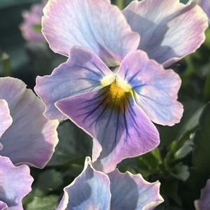 ときめきビオラ『トワイライトヴェール』 1️⃣ 今年デビューした新品種です🩵💜 2️⃣ 色もお顔もいろいろ♪ 🤔あれ?見たことあるな〜?と思われた方!そうなんです!!昨シーズン名無しさんで育てていた子ですよ🩵💜🩵💜 3️⃣ 4月上旬のゆめかわ色でたくさん咲いていたpic。 昨シーズン育てて、色も姿もとっても素敵なので、来年採用してもらうようにGreen Farm Villageさんに伝えて🙏とバイヤーさんにお願いしていました。 思いが届いたのか?最初から決まっていたのかわかりませんが、デビュー✨✨嬉しい💕💕 ヤッタ━ヾ(。˃ ᵕ ˂ )ノ゙━!!!