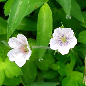 いつもの散歩道にて ゲンノショウコ白とピンクの花が咲いてました🌼