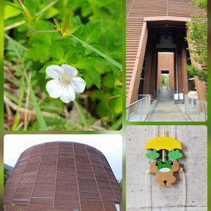 兵庫県「木の殿堂」に行きました。 この施設は安藤忠雄氏の設計で、日本文化の原点である森や木のすばらしさを、さまざまな視点でとらえ紹介する自然学習施設として1994年に建設されました。 「森と海と太陽」をテーマに、一歩中に入ると吹き抜けの広い空間に木の香りが広がり、木漏れ日が差し込みむ幻想的で心地良いまさに木の殿堂でした😌 沢山の木製遊具が設置されており、カエルの昇り人形を発見🐸 木工スペースもあるので、また体験に訪れたいと思います👍 駐車場に向かう途中、ポツンとゲンノショウコが咲いていました🌼